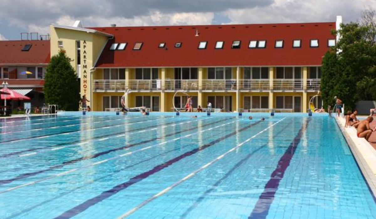A Komáromi Gyógyfürdő közvetlen szomszédságában fekszik, a fürdő területére saját bejárattal rendelkezik. Az apartmanok többségéhez saját teraszok tartoznak, melyek a háztól mindössze 20 m-re található feszített víztükrű medencékre néznek. A közvetlen kapcsolat által a gyógyfürdő összes létesítménye 1-2 percen belül elérhető, melynek szolgáltatásait a ház vendégei napközben korlátlan alkalommal vehetik igénybe.