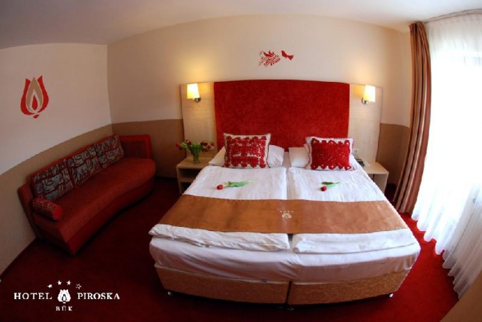 A Hotel Piroska**** 92 szobával, különleges hangulatú élményfürdővel (új családi pihenőtér gyermekmedencével, beltéri élmény-, ill. kültéri medence, finn-, bio- vagy infra szaunák, aromaterápiás török gőzfürdő és tepidárium), sokszínű wellness-kínálattal.