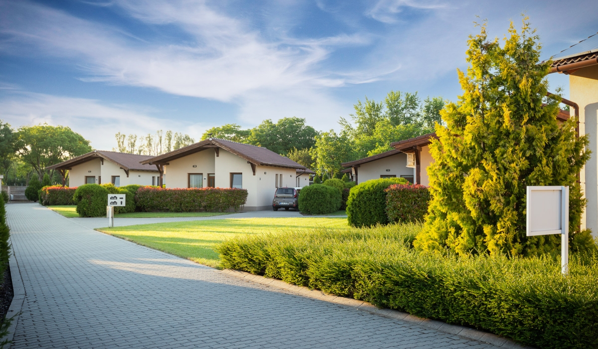 Az apartmanokban hatan kényelmesen elférnek. Az egyik hálószobában franciaágy, a másikban két különálló ágy, a nappaliban kihúzható kanapé van. Minden házhoz tartozik bútorozott terasz és saját parkoló. Az apartmanok télen fűthetők, nyáron klimatizálhatók. Mozgáskorlátozott vendégeinknek egy speciálisan kialakított apartman áll a rendelkezésükre közvetlenül a közösségi ház mellett.