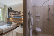 Kétágyas szoba 2 db különálló  ággyal, igény szerint összetolható, zuhanyozós fürdőszoba