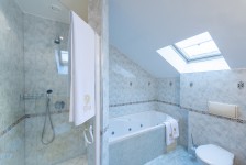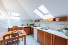 A 7. emeleten található 77 négyzetméteres két légteres apartman ideális választás a nagyobb családok részére. A szobához a 6. emeletről külön lépcső vezet fel a tágas apartmanhoz.