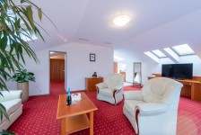 A szoba hálórészében franciaágy, 36 négyzetméteres nappalijában kinyitható bőr ülőgarnitúra és fotelek találhatók. További pótágy és babaágy kényelmes elhelyezésére van lehetőség. A fürdőszobában fürdőkád és külön zuhanyfülke szolgálják vendégeink kényelmét.